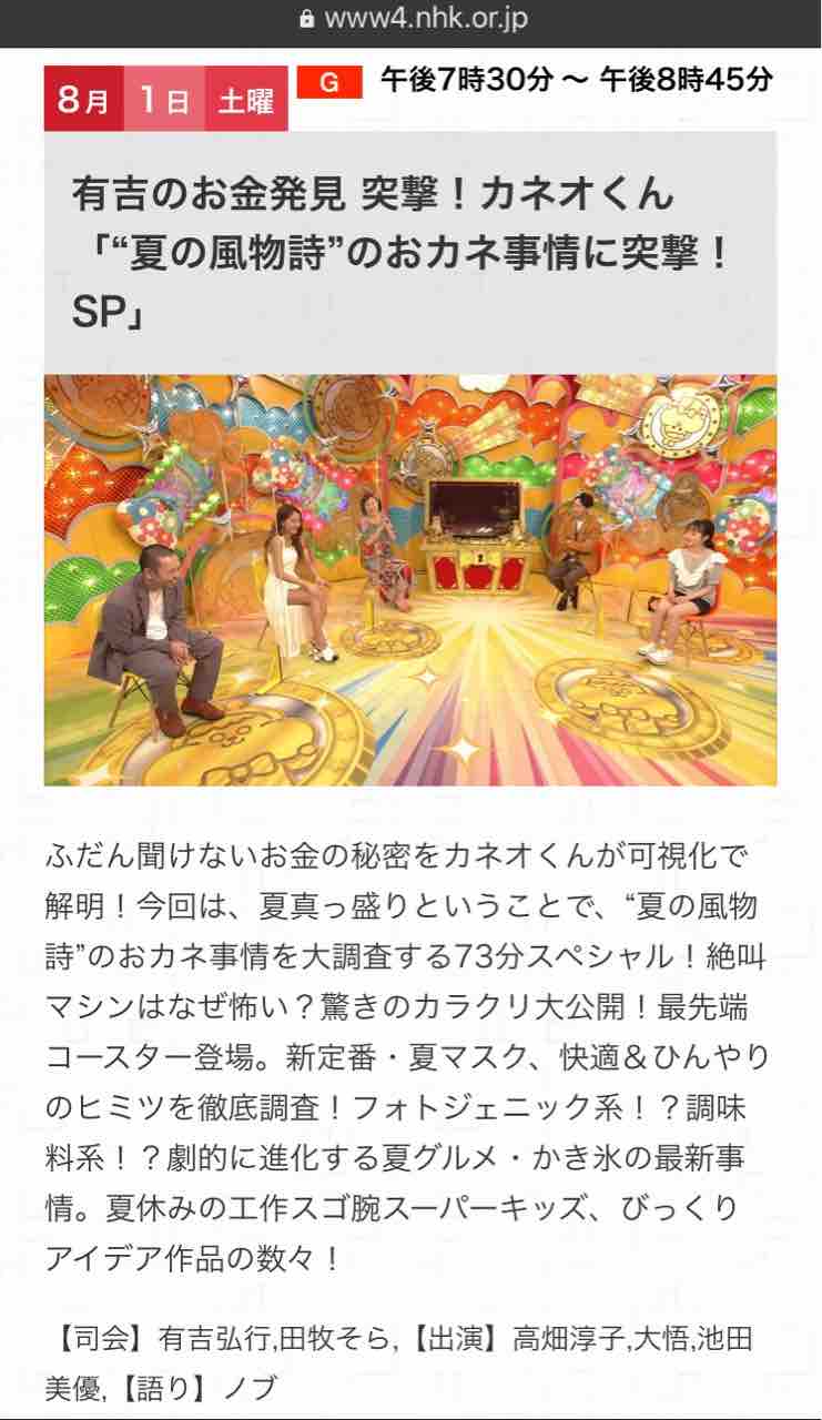 みじゅんtv番組情報 9 26 土 20 15 Nhk 有吉のお金発見 突撃 カネオくん Overture205のブログ